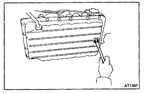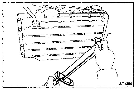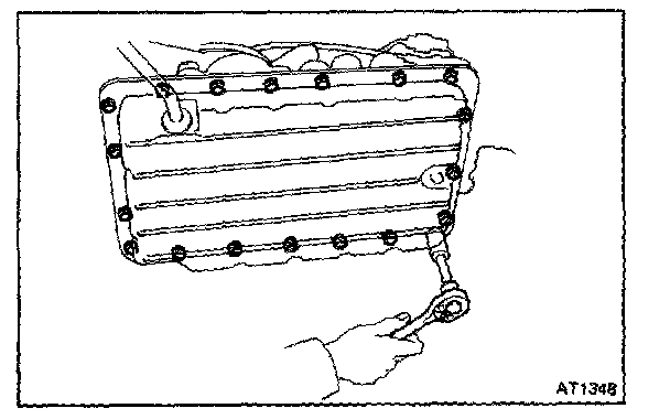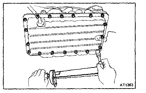 CAUTION: When removing the oil pan, be careful not to damage the oil pan flange.