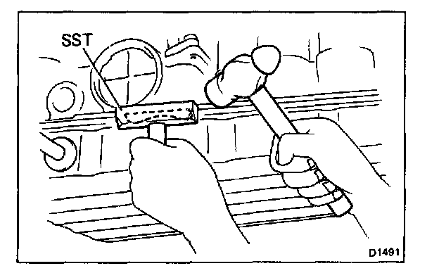 b. Insert the blade of SST between the transmission case and oil pan, cut off applied sealer and then remove the oil pan.