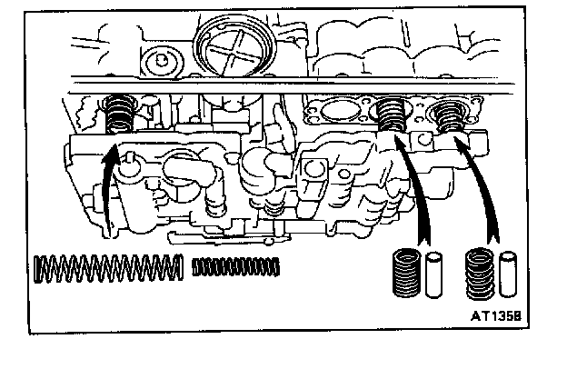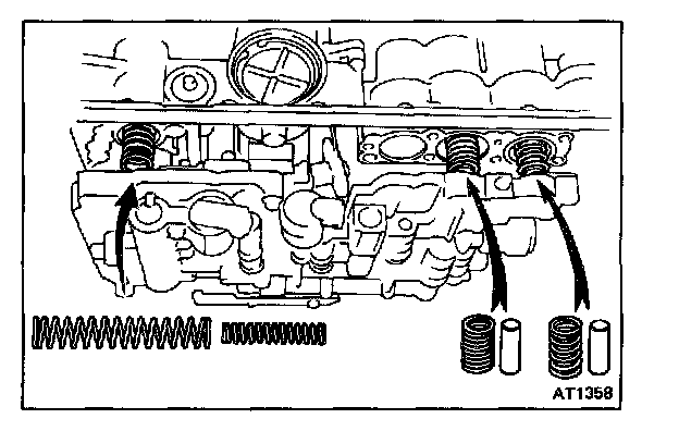 b. Remove the C(0), C(2) and B(2) accumulator piston springs with C(2) and B(2) piston spacers.