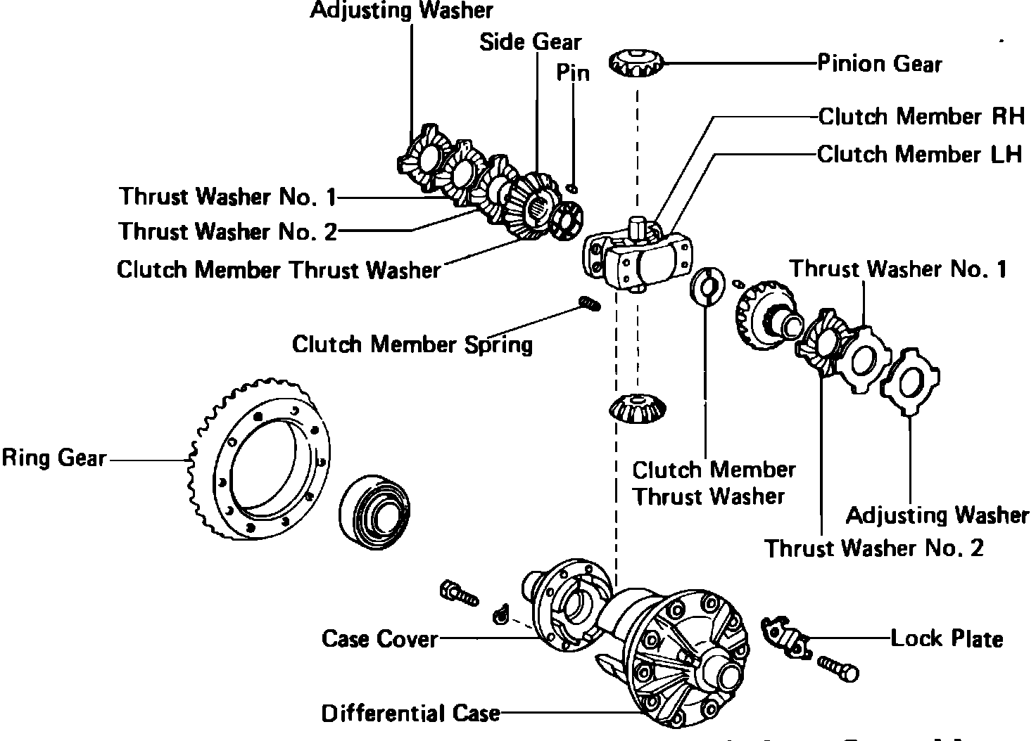 1. Clean and inspect all components, and replace any that are damaged or excessively worn. If side gears and/or clutch members are replaced, contacting thrust washers must also be replaced.