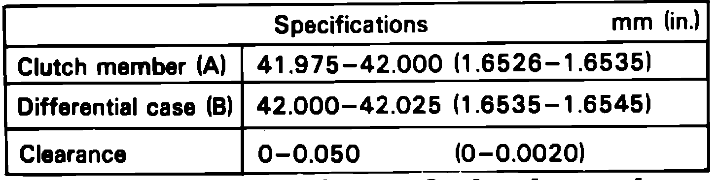4. Measure left clutch member and differential case dimensions, Fig. 39, and replace components if dimensions or clearance is not as specified, Fig. 40.