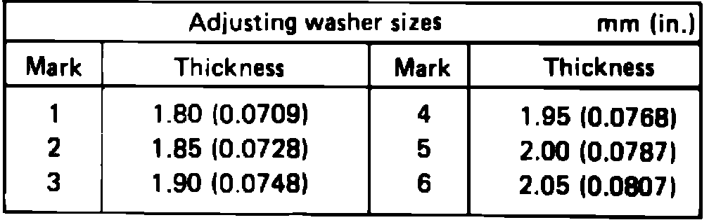 Fig. 42 Limited slip adjusting washer selection chart. Cressida, 1984-85 Celica & 1984-Early 1986 Supra w/independent rear suspension: