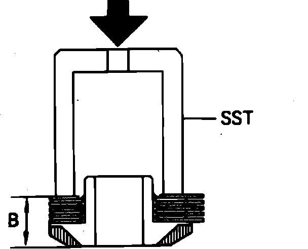 b. Using tool No. 09726-35010, apply approximately 22 lbs. of pressure to thrust washer and clutch pack while measuring dimension ``B'', Fig. 48.