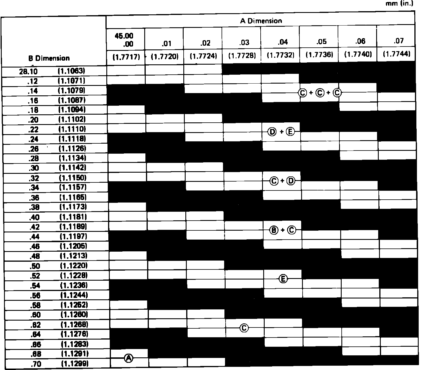 c. To determine side bearing shim thickness ``C'', use the following formula: ``C''=``A'' - ``B'' - .6358 inch (16.15 mm).