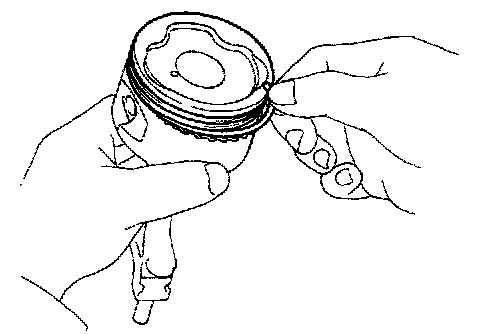 (b) Using a piston ring expander, install the two compression rings with the code mark facing upward.