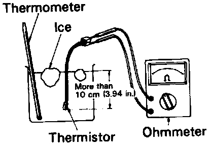 2. Place the thermistor in cold water. While varying the temperature of the water, measure the resistance at the connector and, at the same time, measure the temperature of the water with a thermometer.