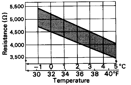 3. Compare the two readings on the chart. If the intersection is not between the two lines, replace the thermistor.