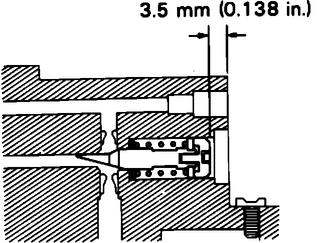 4. Screw in the mixture adjusting screw until the head is 0.138 in. below the lower surface of the carburetor, Fig. 151. Be careful not to damage the screw tip by tightening the screw too tight!
