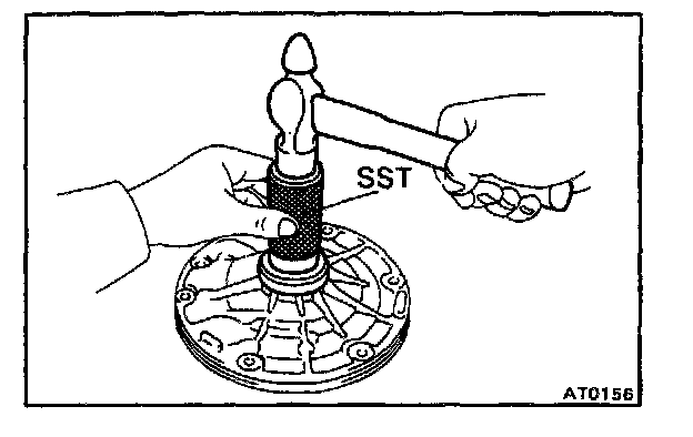 b. Using SST and a hammer, install a new oil seal. The seal end should be flush with the outer edge of the pump body.