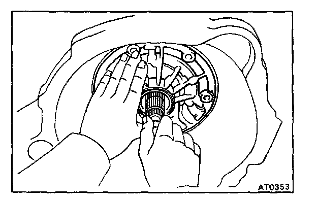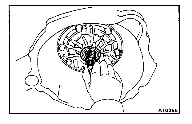 CAUTION: Do not push on the oil pump strongly or the oil seal ring will stick to the direct clutch drum.