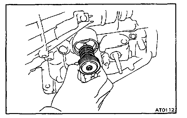 d. Check that the front end of the piston rod contacts the center of the second brake band depression.