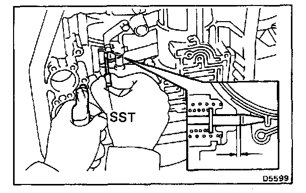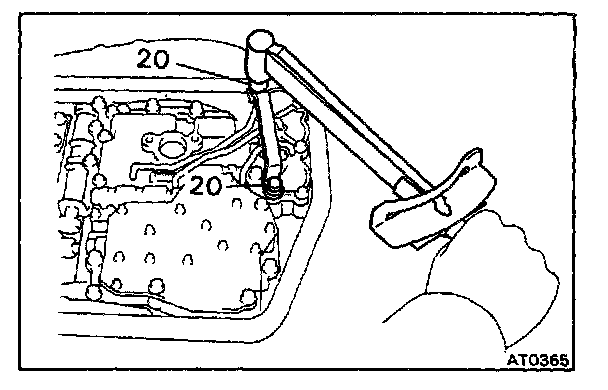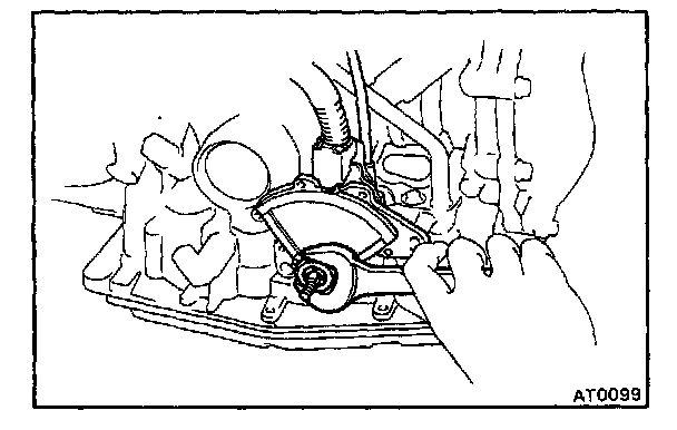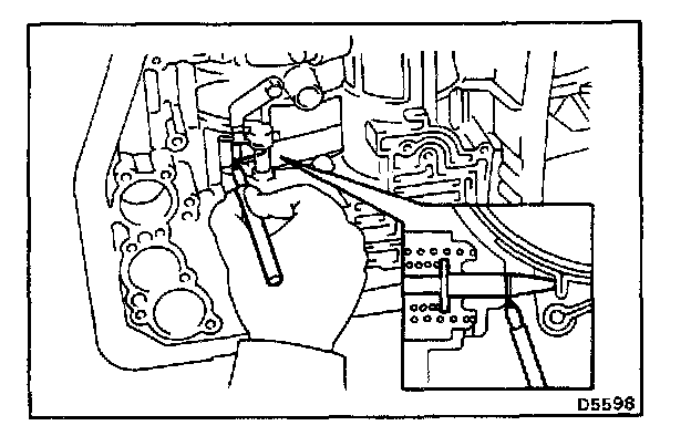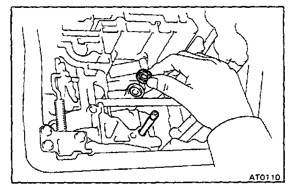 b. Check that the manual valve lever is touching the center of the detent spring tip roller.