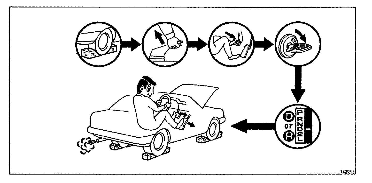 d. Step down strongly on the brake pedal with your left foot.