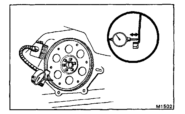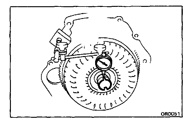 a. Temporarily mount the torque converter to the drive plate. Set up a dial indicator.