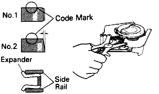 (b) Using a ring expander, install the two compression rings with the code marks facing upward.