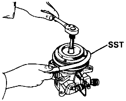 1. Using the SST(07110-77011) and a socket, remove the shaft nut.