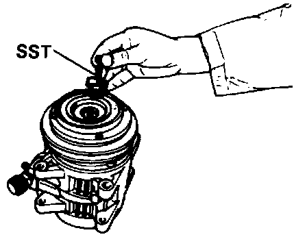 7. Using the SST(07114-84020), remove the snap ring and the stator.