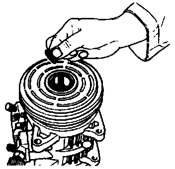 8. Adjust the clearance between the pressure plate and rotor by adding or removing shims on the compressor shaft.