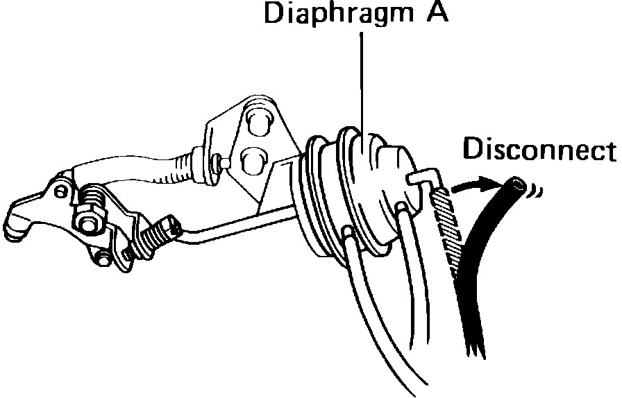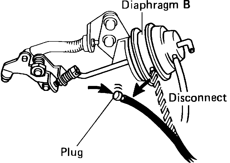 4. Disconnect vacuum hose from TP diaphragm B, Fig. 85.