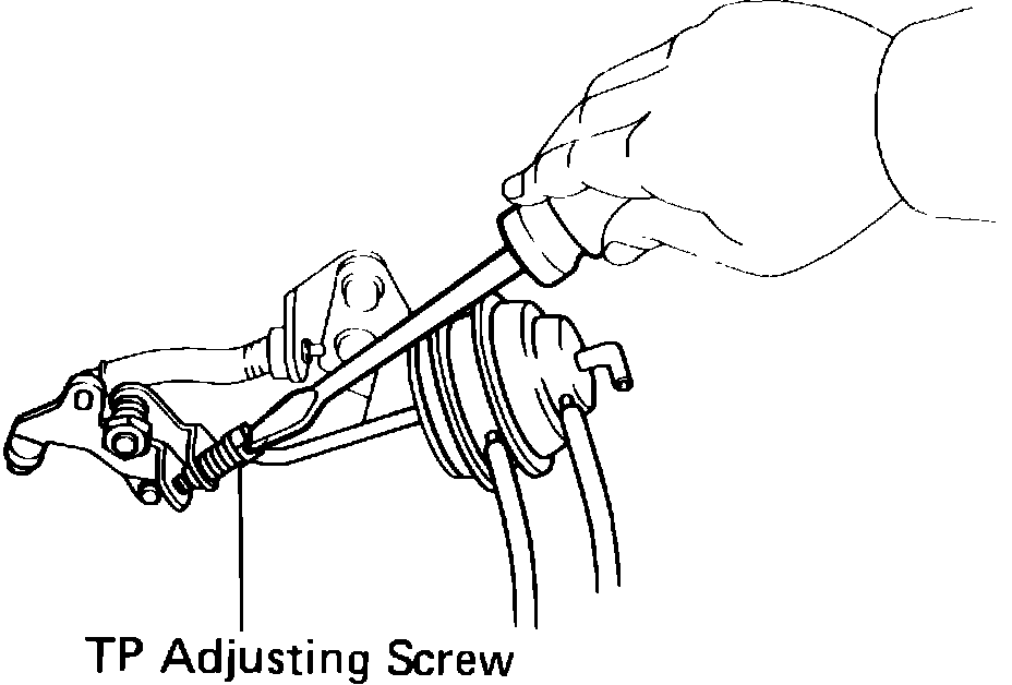 2. Check that the TP is at the first step (electrical load idle up). The settings for first step speed should be 800 RPM for M/T and 900 RPM for A/T.