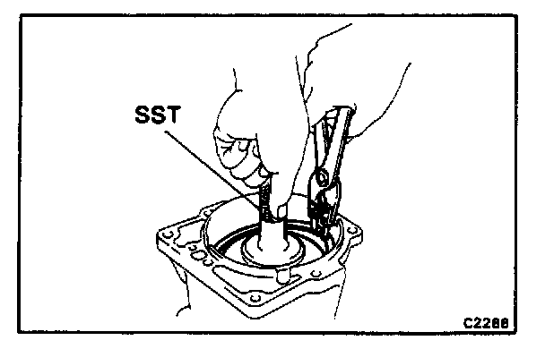 a. Using SST and a hammer, drive in a new oil seal. (even with the surface of the housing)