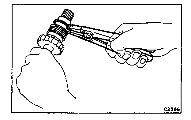 b. Using snap ring pliers, install the snap ring to the output shaft.