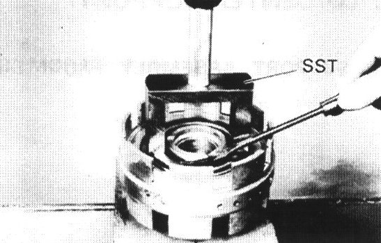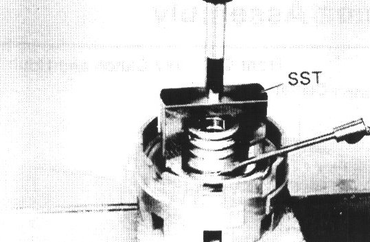 Place SST on spring retainer and compress the springs with a shop press.