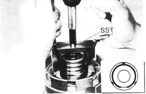 a. Place SST on the spring retainer, and compress the springs with a shop press.