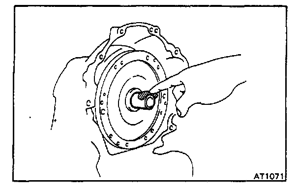 CAUTION: Be careful not to tilt the transaxle forward because the torque converter could slide out.
