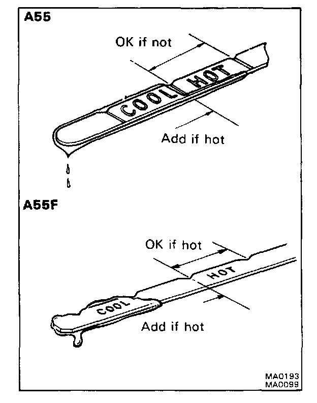 c. Check the fluid level and add ATF to the upper mark.