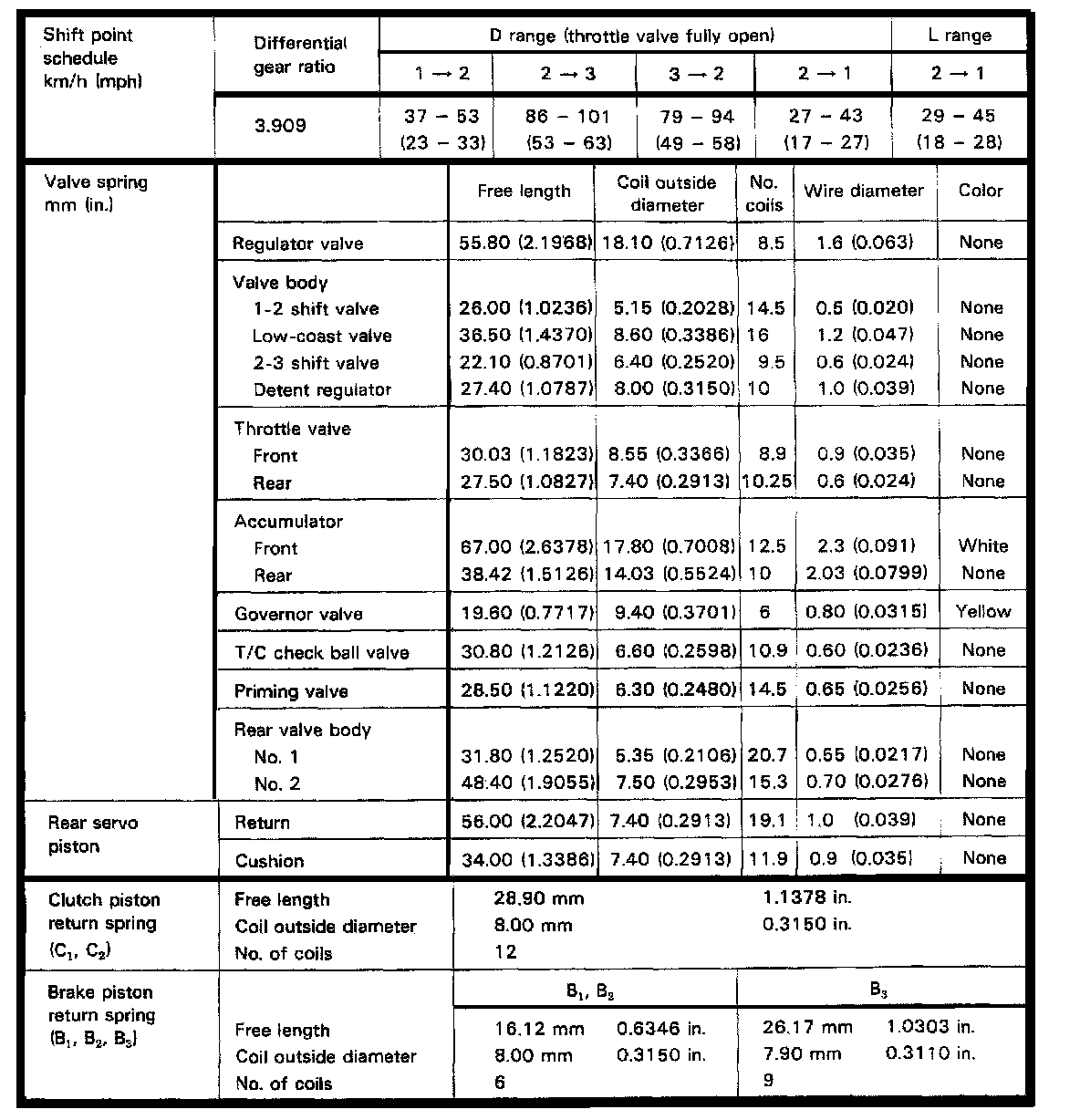 A55F 3-spd A/T, Gear Ratio/Spring Clearances:
