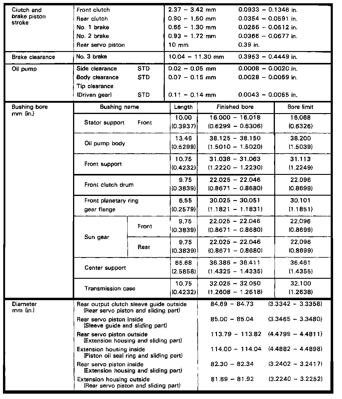 A55F 3-spd A/T, Clutch Clearance/Diameters: