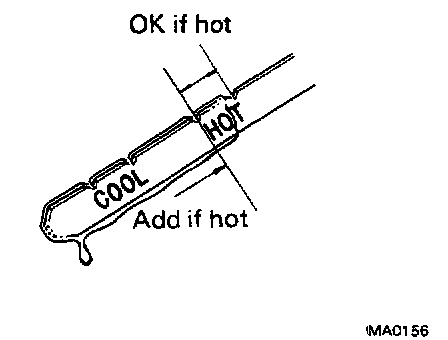 (e) With the engine idling, check the fluid level. Add fluid up to the "COOL" level on the dipstick.