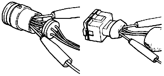 b. Insert the test probe into the connector from wiring side when checking the continuity, amperage or voltage.