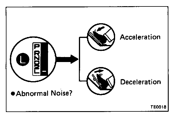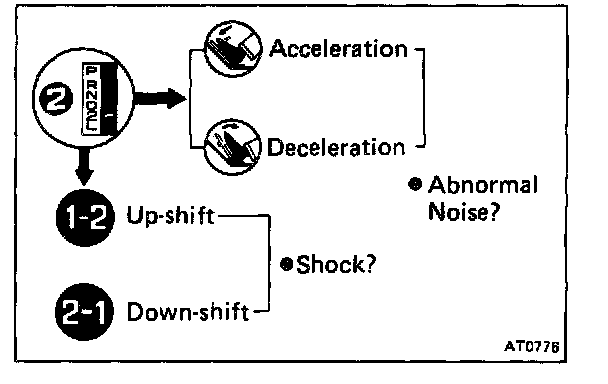 d. Check for abnormal noise at acceleration and deceleration, and for shock at up-shift and down-shift.