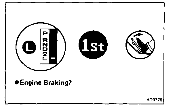 f. While running in the D range 3rd gear or OD gear, shift to 2 and L ranges and check the engine braking effect at each of these ranges.