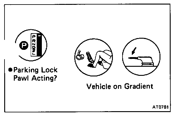 Stop the vehicle on a gradient (more than 9 %) and, after shifting into P range, release the parking brake. Then check to see that the parking lock paw holds the vehicle in place.