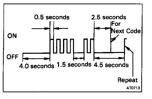 b. In the event of a malfunction, the light will blink for 0.5 seconds every 1.0 seconds. The number of blinks will equal the first number and, after 1.5 second pause, the second number of the two digit diagnostic code. If there are two or more codes, there will be a 2.5 second pause between each.