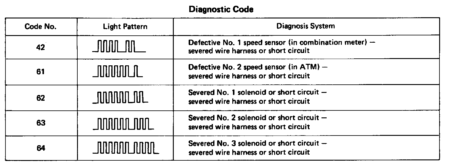 NOTE: Warning and diagnostic code can be read only when the overdrive switch is ON. If OFF the overdrive light will light continuously and will not blink.