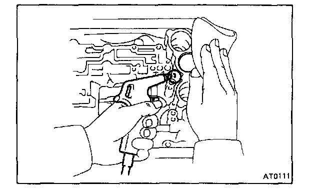 NOTE: Hold the piston so it does not slant and then blow with the gun slightly away from the oil hole.