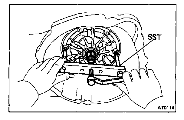 21. PULL OIL PUMP FREE WITH SST FROM TRANSMISSION CASE