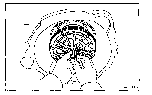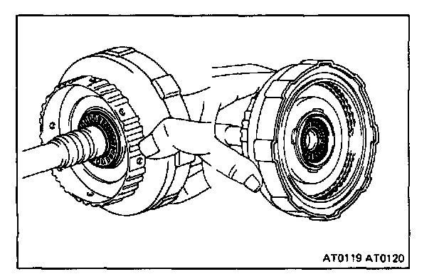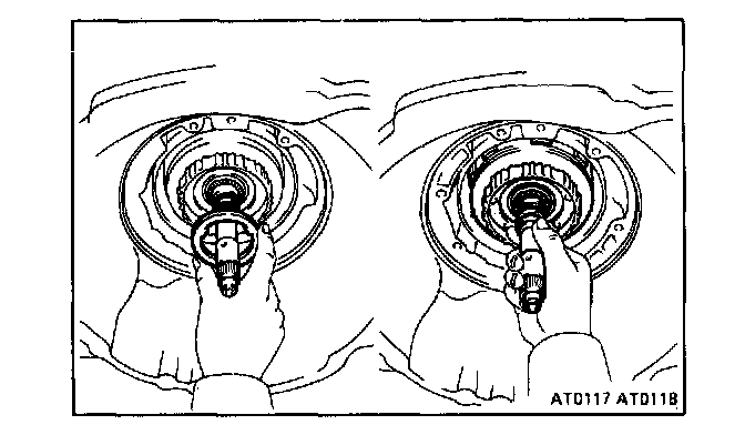 While holding the input shaft, grasp the pump stator shaft and pull the oil pump and direct clutch together out the transmission case.