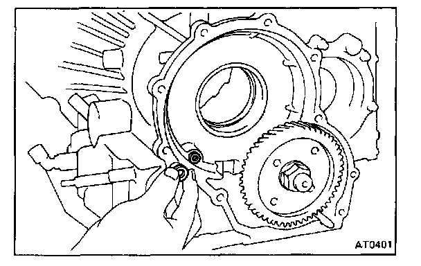a. Push the pin with a small screwdriver and remove it from the bolt hole of the oil pump mounting.