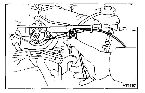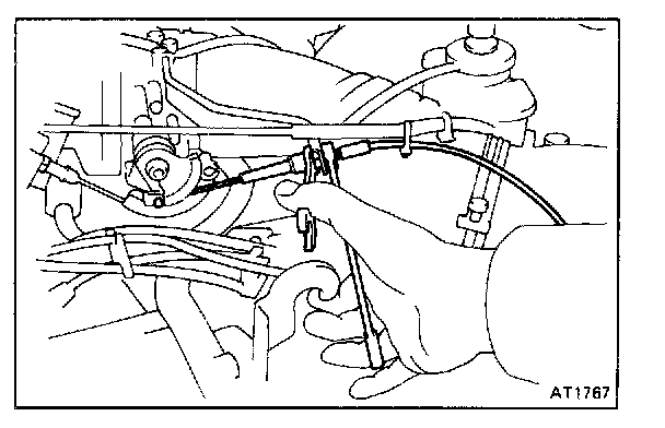 4. PULL THROTTLE CABLE OUT OF TRANSMISSION CASE
