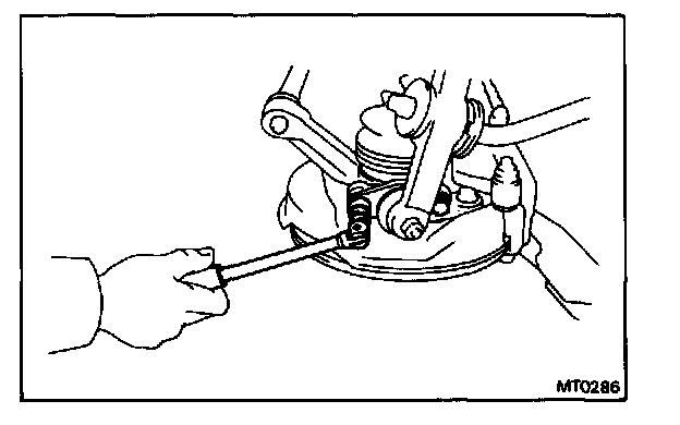 Loosen the six nuts while depressing the brake pedal.