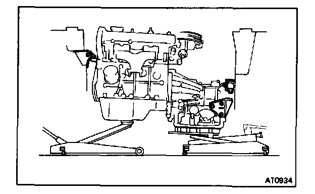 a. Hold the engine and transaxle with two jacks, or a chain block and jack.