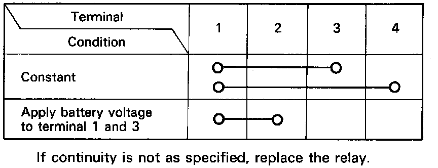 If continuity is not as specified, replace the relay.
