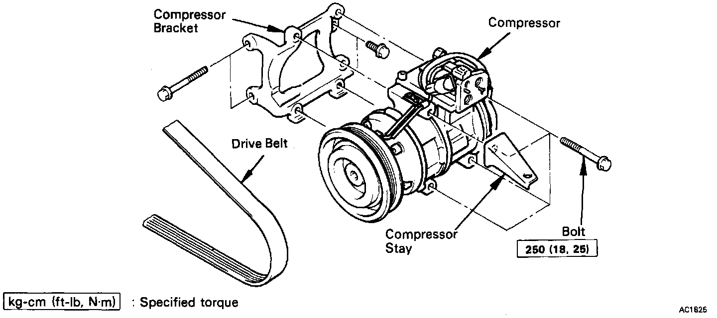 1. Install compressor with four mounting bolts
