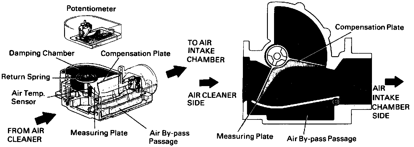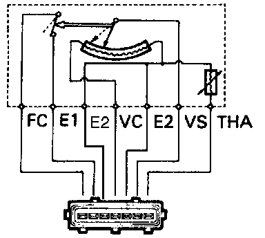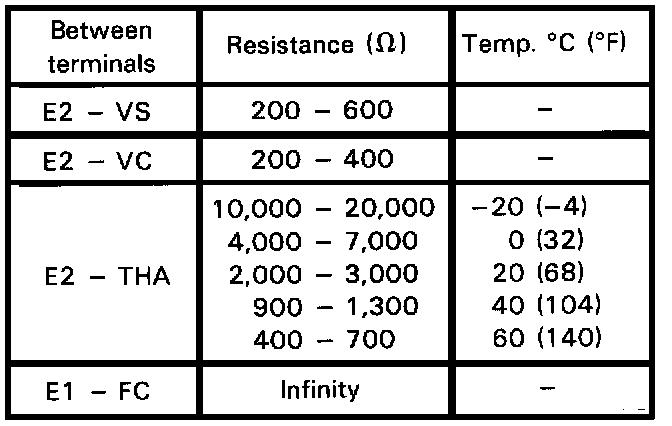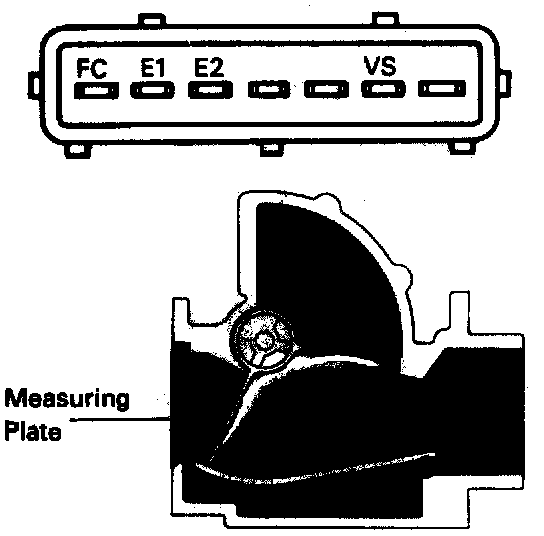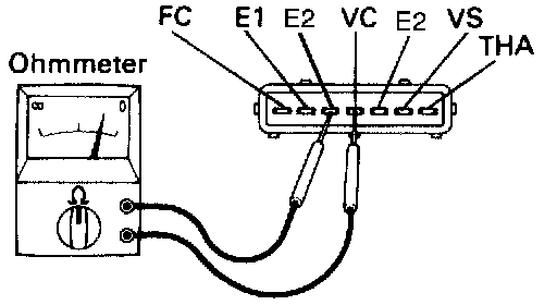 NOTE: Resistance between terminals E2 and VS will change in accordance with the measuring plate opening. If the resistance is as specified, replace the meter.