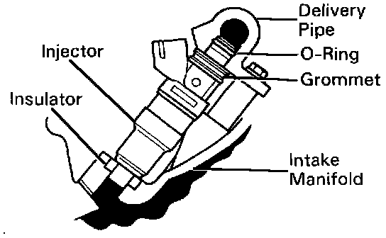 4. Install the injector to delivery pipe and cylinder head as shown.